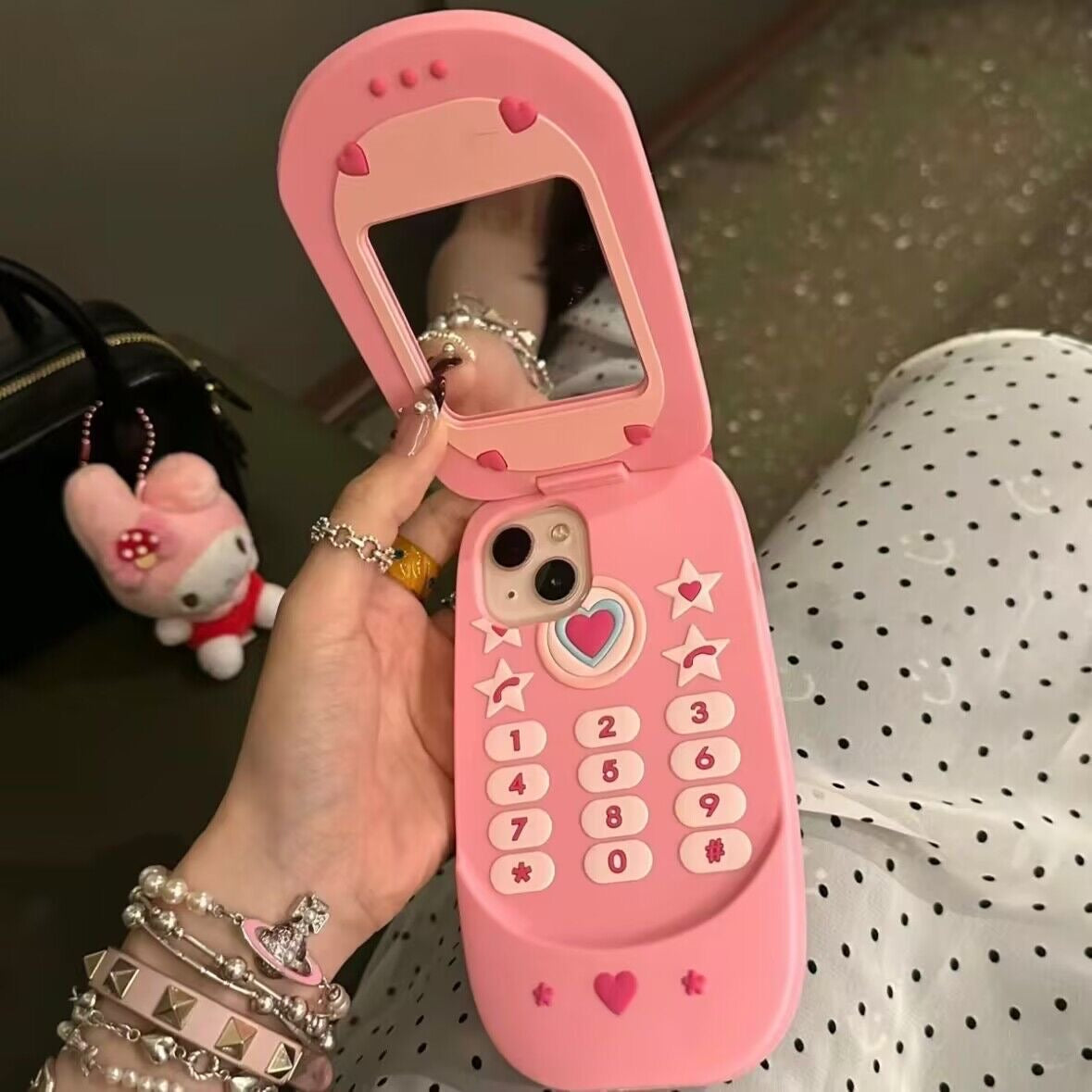 Pink Girly Y2K Mirrored Flip Phone Silicon Case