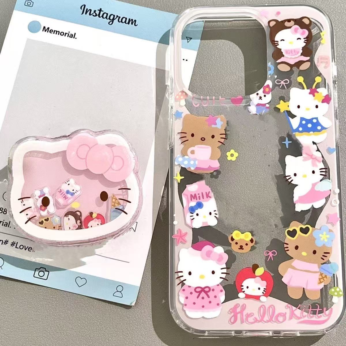 Clear Kawaii Japanese Kitty Case with Pink Phone Grip